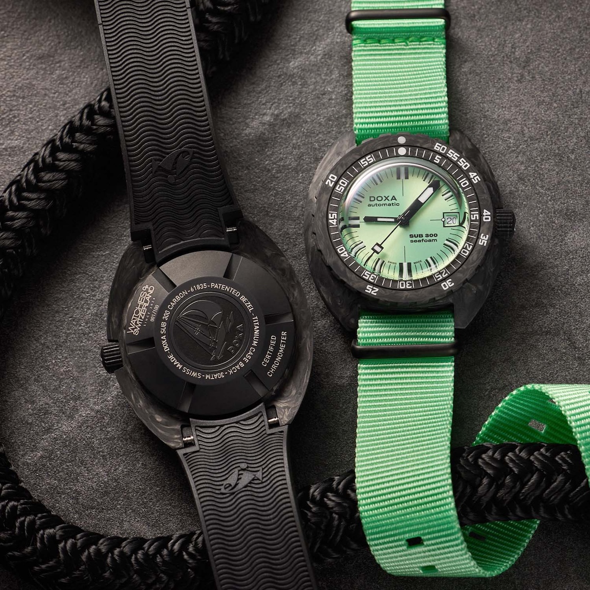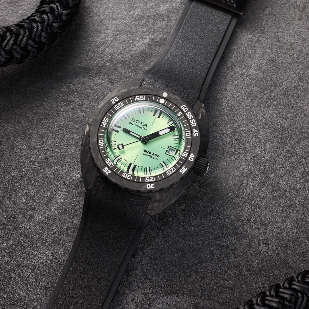 The new Doxa Sub 300 Carbon Seafoam brings together advanced materials and a daring color palette in a limited-edition collaboration with Watches of Switzerland. With its feather-light forged carbon case and vibrant dial, it pushes the Sub 300 into new territory while staying true to the brand’s deep-sea roots.