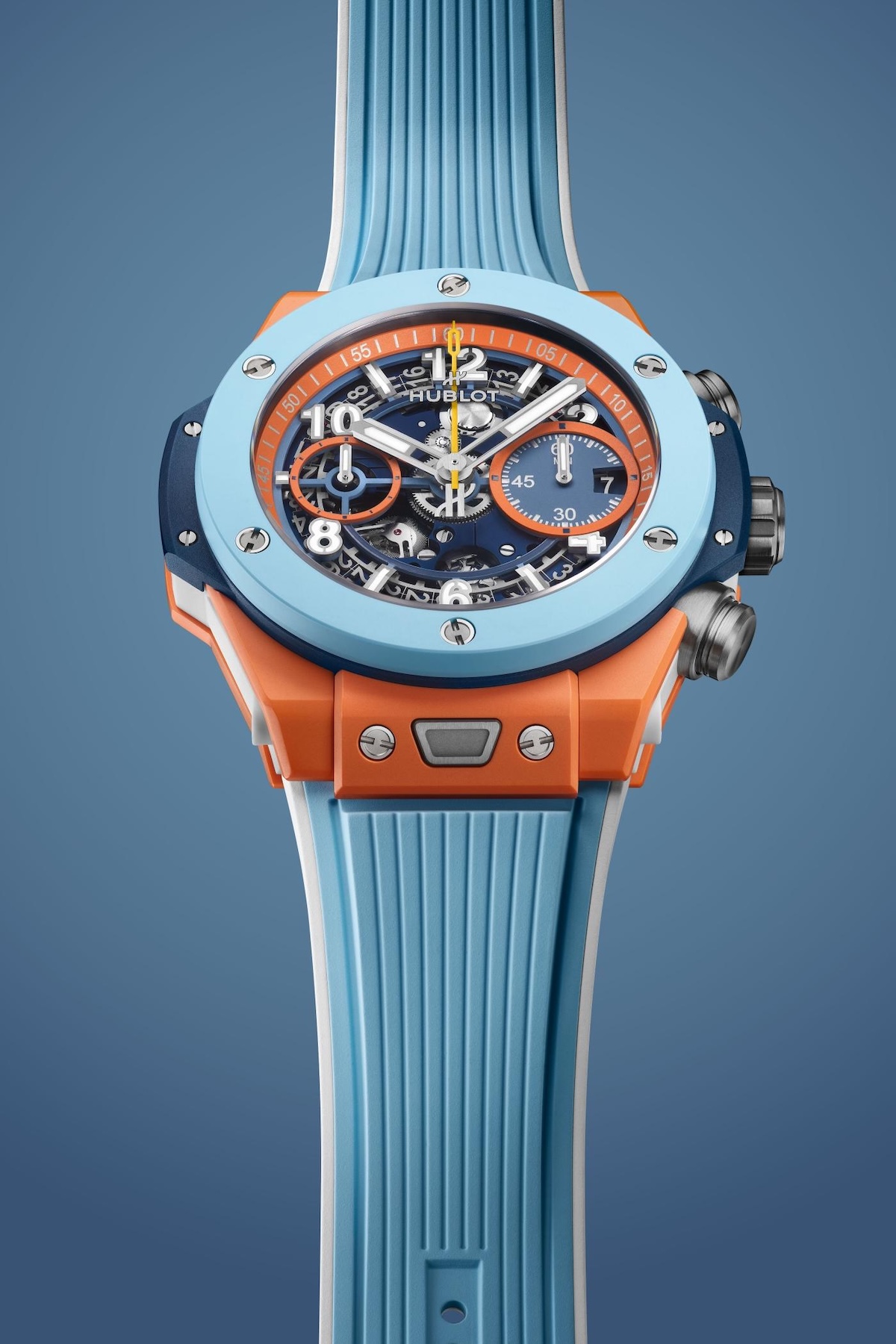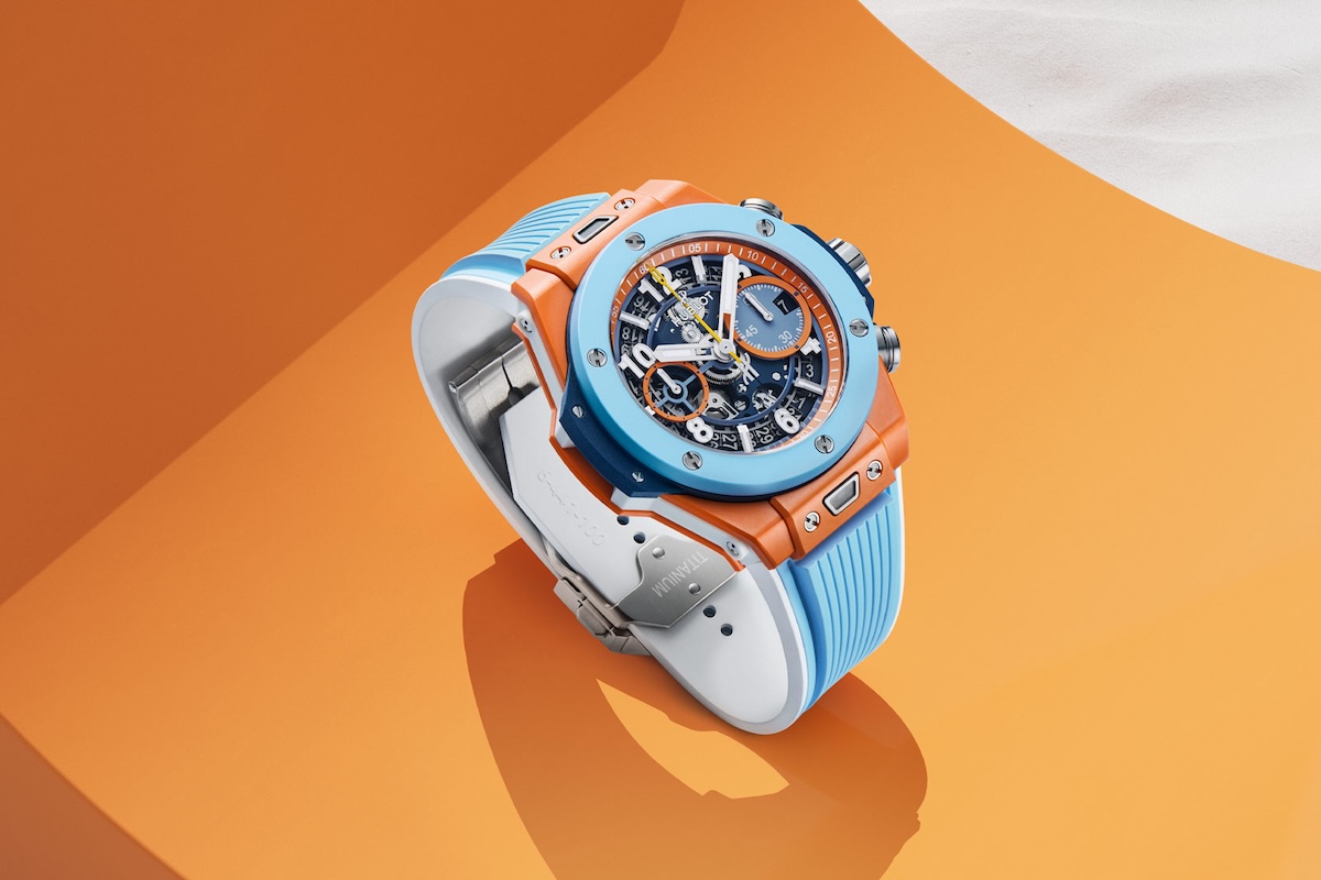 Founded in 1980, Hublot quickly disrupted the watchmaking world by fusing gold with rubber—an audacious move at the time. This spirit of “Art of Fusion” continues to define the brand, blending materials, colors, and genres to create timepieces that defy convention. The Big Bang collection, introduced in 2005, remains the cornerstone of this philosophy. A mechanical chronograph with an architectural case design and modular construction, it has become a platform for stylistic experimentation. The new Summer edition builds on previous seasonal releases but brings an even more vivid personality to the table.